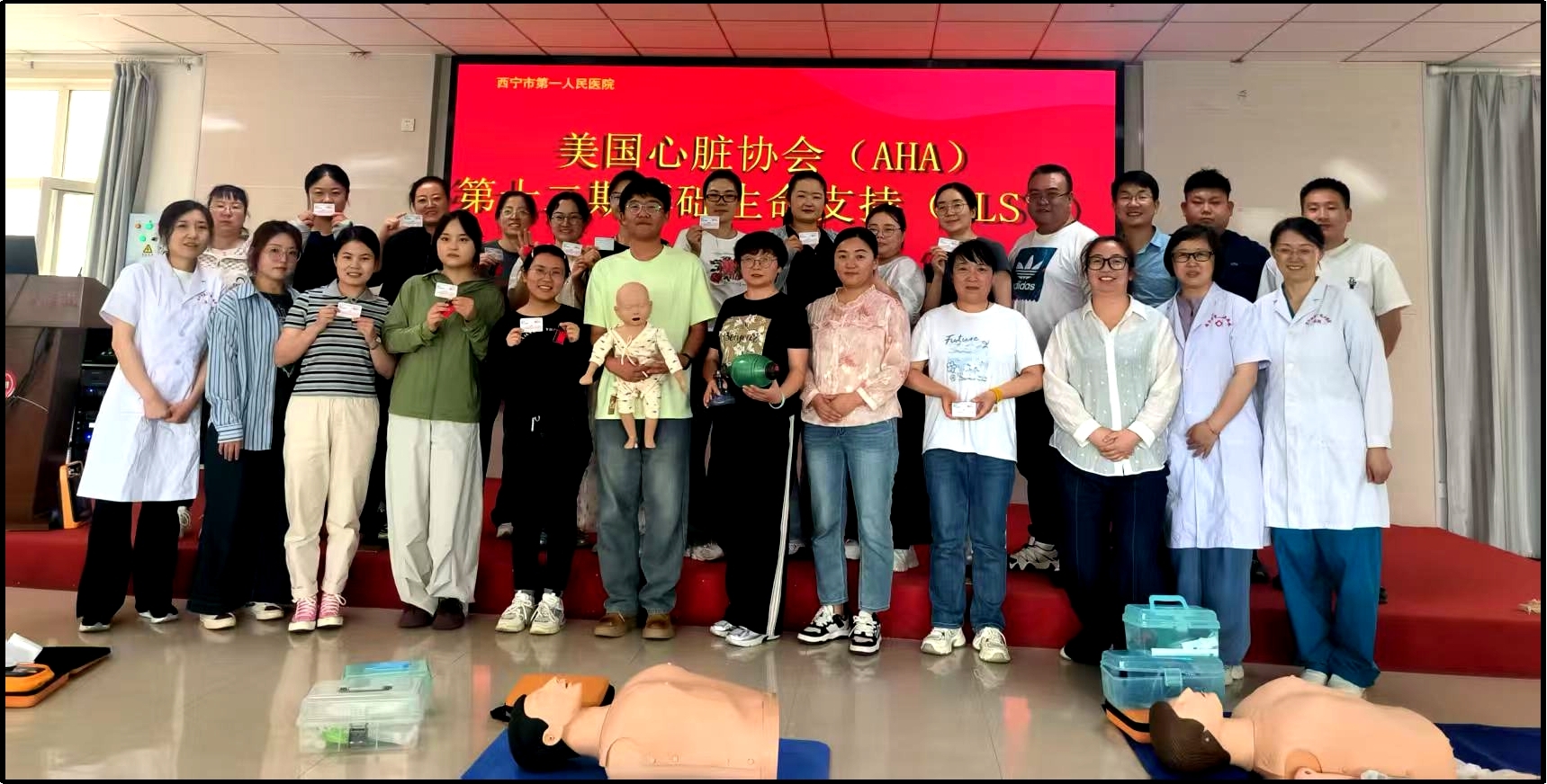 为切实提升全市基层医务人员基础生命支持(BLS)应急救治处置能力,依据根据《西宁市公立医院引智强才工作及墩苗育才行动实施方案》(宁卫健〔2025〕72号)中《西宁市公立医院改革与高质量发展示范项目骨干培育行动工作方案》,西宁市第一人民医院教学管理部于2025年7月1日至7月14日期间组织开展四期美国心脏协会(AHA)基础生命支持(BLS)培训,来自全市各区县72名医务人员参加此次培训。